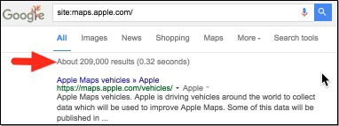 Apple now has about 7 (currently) indexed pages for points of interest, while another 200,000 or so are blocked from being indexed by robots.txt.